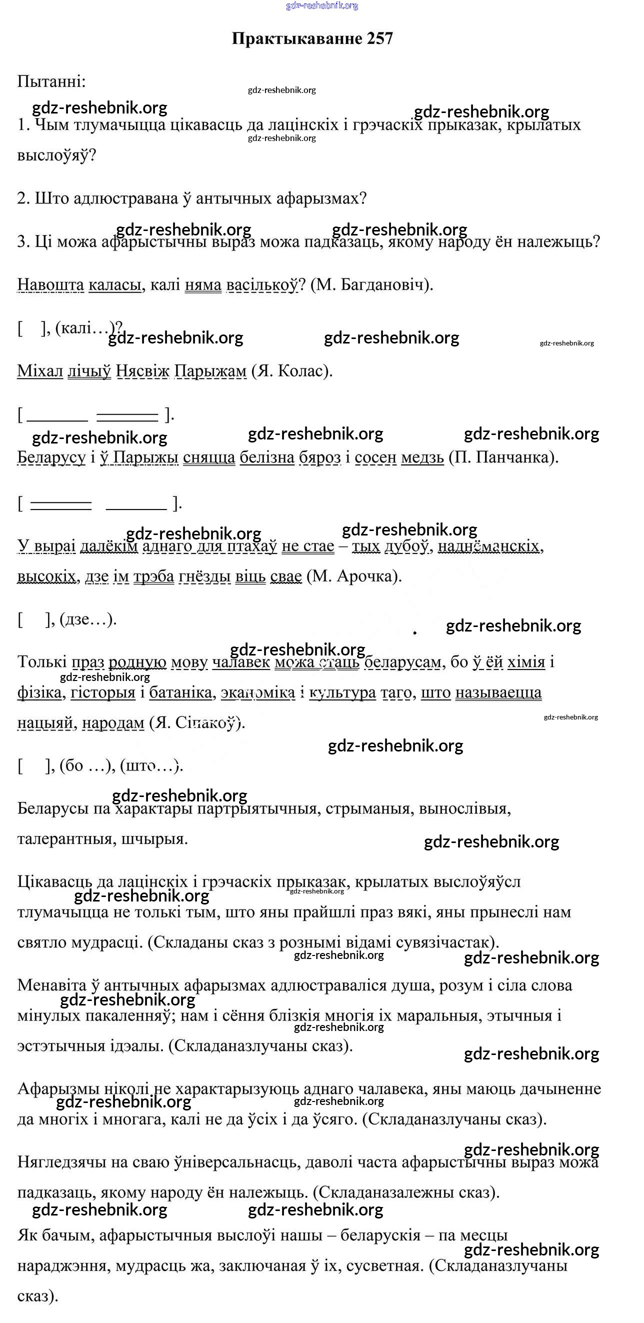 gdz-reshebnik.org - сайт готовых домашних заданий и решебников для школьников по Белорусскому языку для девятого класса. Предоставляем готовые ответы на задания, авторские материалы к Учебнику Валочка, Васюковіч - Практыкаванні 257 . Основная часть контента представлена в бесплатном онлайн-формате с удобным и простым интерфейсом.