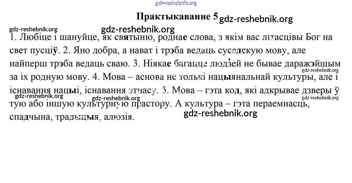 ГДЗ решебники Учебник по Белорусскому языку 9 класс Валочка, Васюковіч - Практыкаванні 5