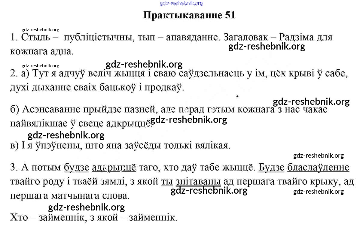 ГДЗ решебники Учебник по Белорусскому языку 9 класс Валочка, Васюковіч - Практыкаванні 51