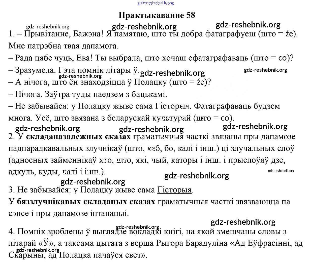 ГДЗ решебники Учебник по Белорусскому языку 9 класс Валочка, Васюковіч - Практыкаванні 58