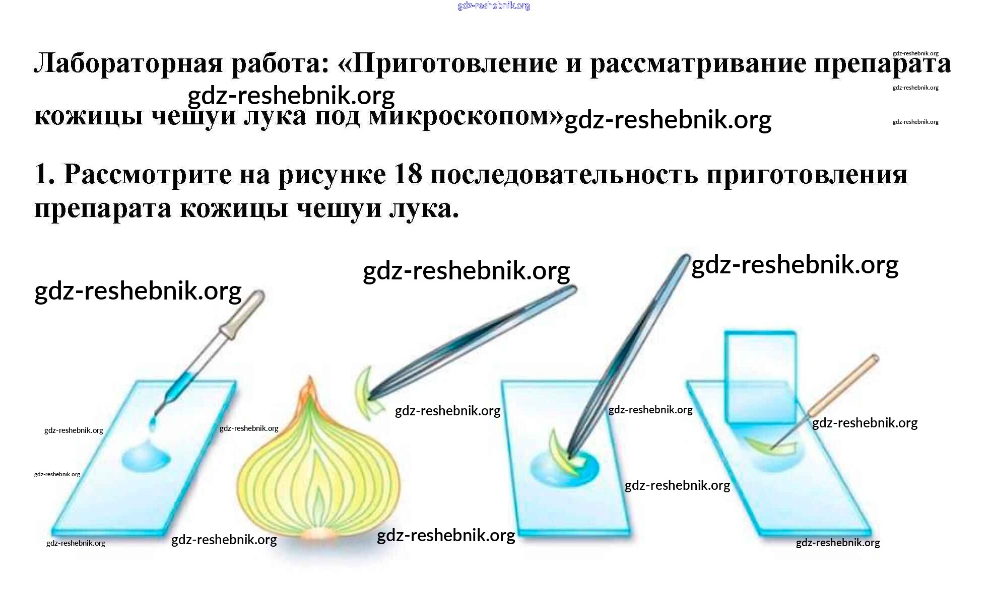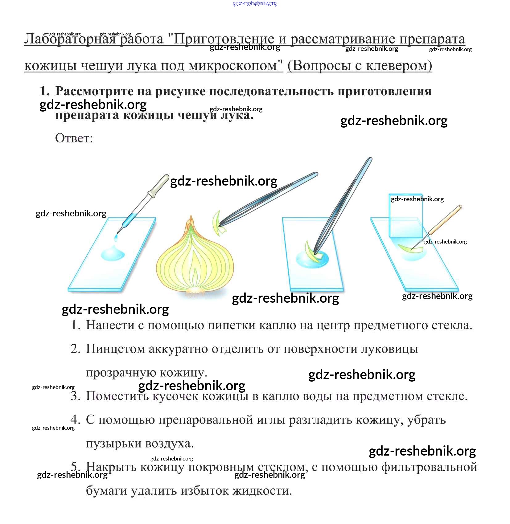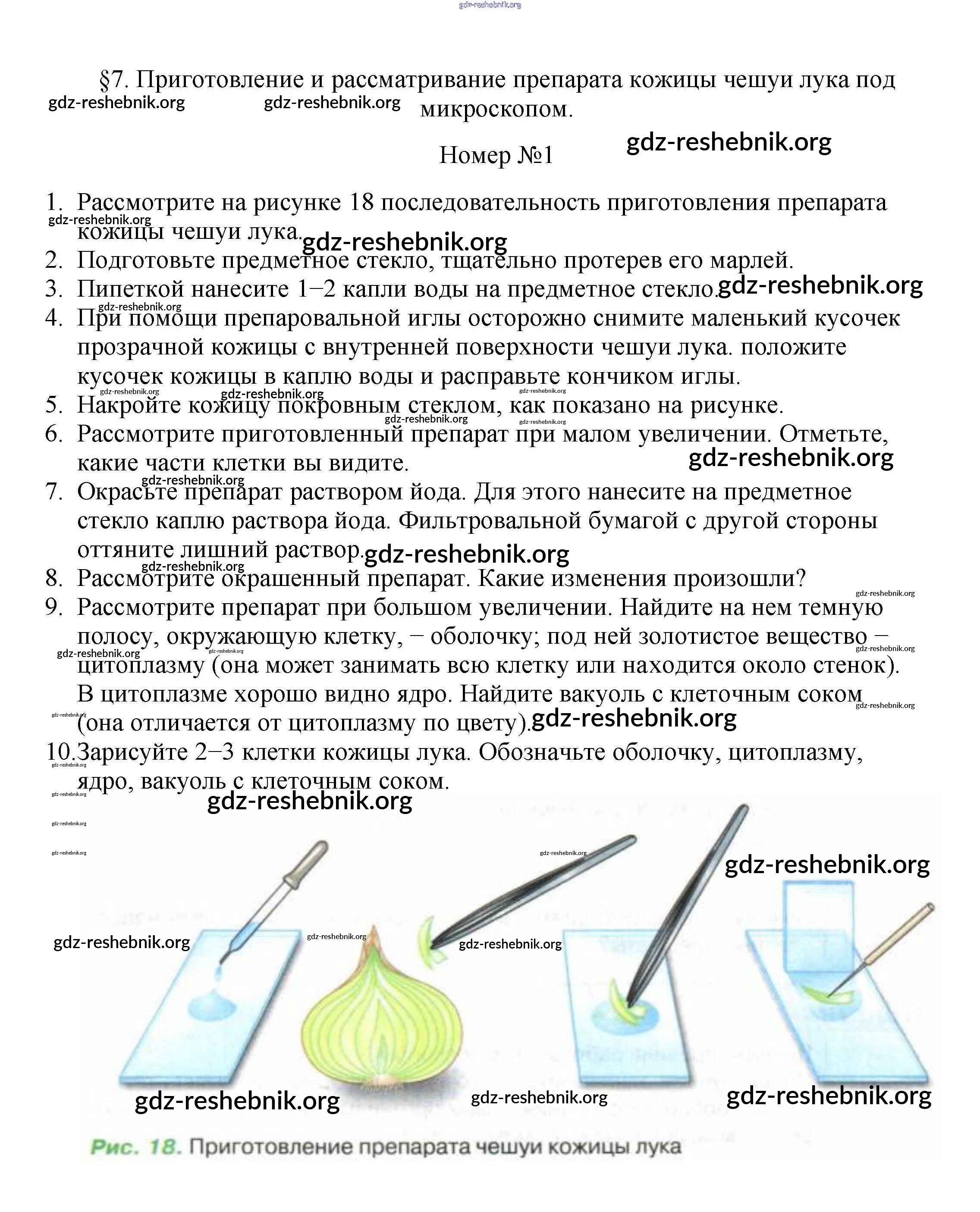 ГДЗ решебники Учебник по Биологии 5 класс Пасечник УМК - Приготовление и рассматривание препарата кожицы чешуи лука под микроскопом 1
