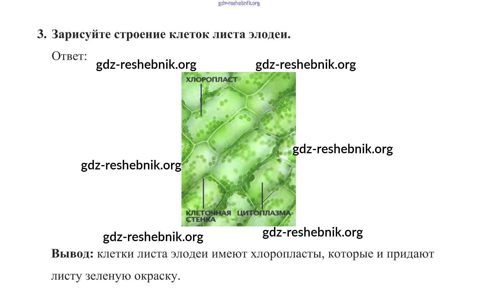 ГДЗ решебники Учебник по Биологии 5 класс Пасечник УМК - Пластиды в клетках листа элодеи 3