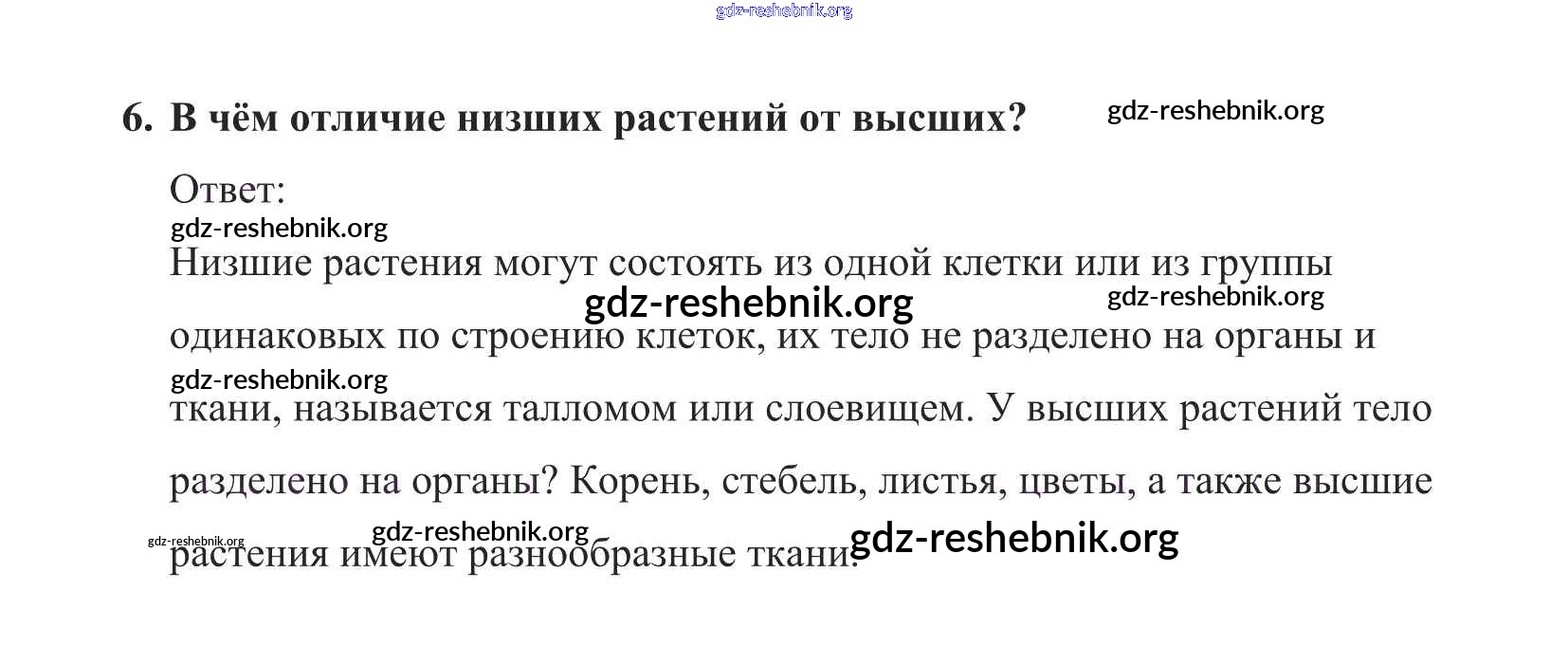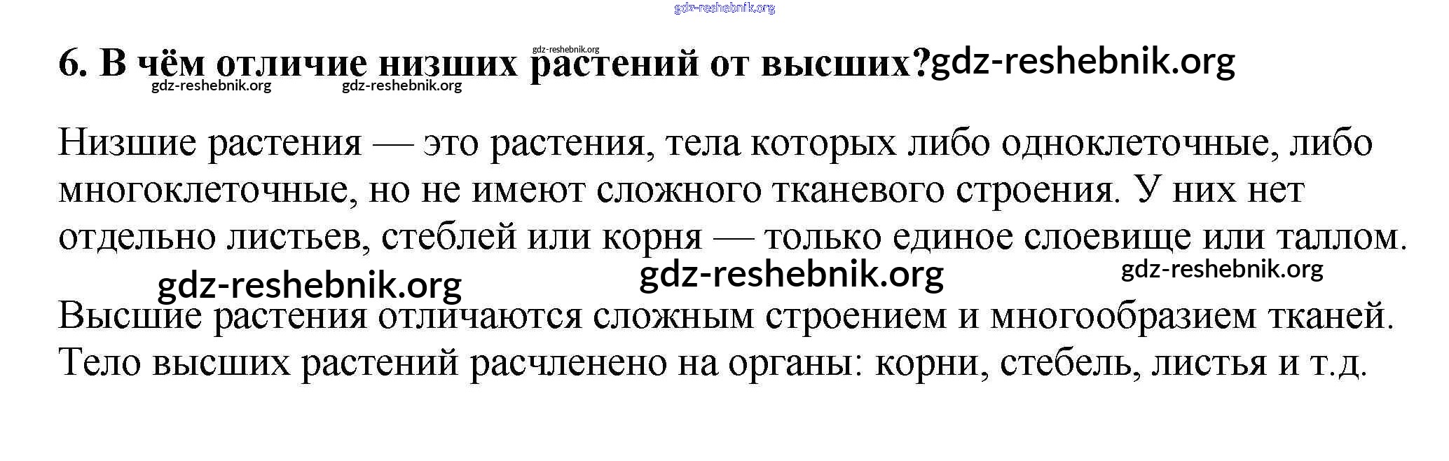 gdz-reshebnik.org - сайт готовых домашних заданий и решебников для школьников по Биологии для пятого класса. Предоставляем готовые ответы на задания, авторские материалы к Учебнику Пасечник УМК - Вопросы в конце параграфа 6 . Основная часть контента представлена в бесплатном онлайн-формате с удобным и простым интерфейсом.