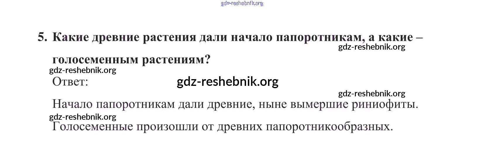 gdz-reshebnik.org - сайт готовых домашних заданий и решебников для школьников по Биологии для пятого класса. Предоставляем готовые ответы на задания, авторские материалы к Учебнику Пасечник УМК - Вопросы в конце параграфа 5 . Основная часть контента представлена в бесплатном онлайн-формате с удобным и простым интерфейсом.