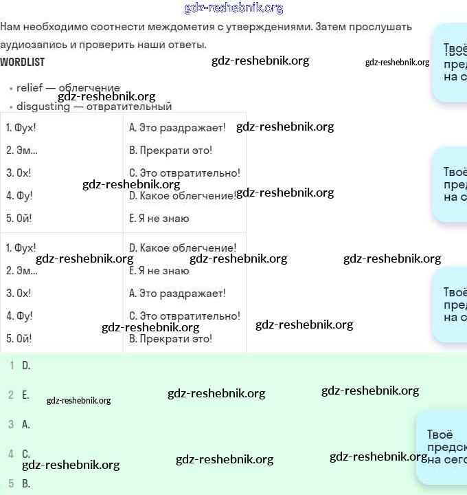 gdz-reshebnik.org - сайт готовых домашних заданий и решебников для школьников по Английскому языку для одиннадцатого класса. Предоставляем готовые ответы на задания, авторские материалы к Учебнику Афанасьева, Эванс Spotlight - 5b 8 . Основная часть контента представлена в бесплатном онлайн-формате с удобным и простым интерфейсом.