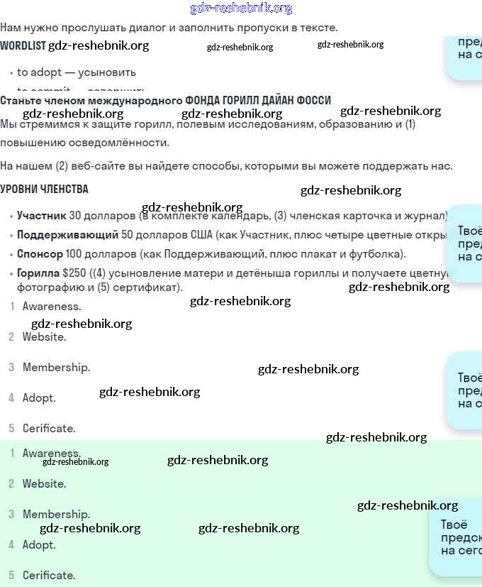 gdz-reshebnik.org - сайт готовых домашних заданий и решебников для школьников по Английскому языку для одиннадцатого класса. Предоставляем готовые ответы на задания, авторские материалы к Рабочей тетради Афанасьева, Эванс Spotlight - Vocabulary Practice 5 . Основная часть контента представлена в бесплатном онлайн-формате с удобным и простым интерфейсом.