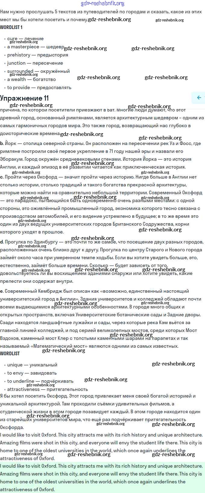 ГДЗ решебники Учебник по Английскому языку 11 класс Афанасьева, Михеева Углубленный уровень - Unit 2. Town and Its Architecture 11