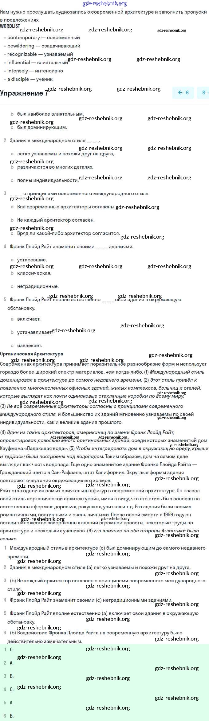 gdz-reshebnik.org - сайт готовых домашних заданий и решебников для школьников по Английскому языку для одиннадцатого класса. Предоставляем готовые ответы на задания, авторские материалы к Учебнику Афанасьева, Михеева Углубленный уровень - Unit 2. Town and Its Architecture 7 . Основная часть контента представлена в бесплатном онлайн-формате с удобным и простым интерфейсом.