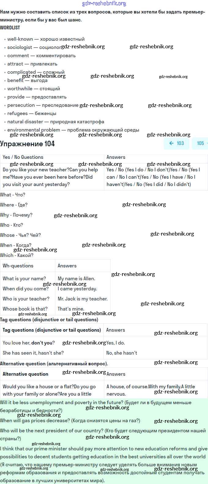 ГДЗ решебники Учебник по Английскому языку 11 класс Биболетова, Бабушис Enjoy English - Unit 1. Young People in Society 104