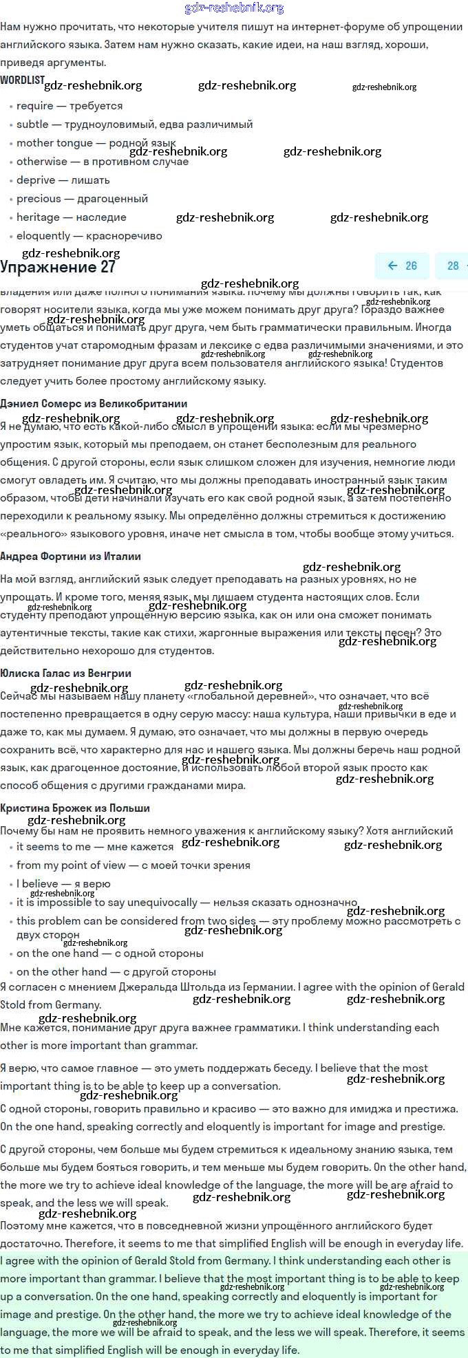 ГДЗ решебники Учебник по Английскому языку 11 класс Биболетова, Бабушис Enjoy English - Unit 1. Young People in Society 27