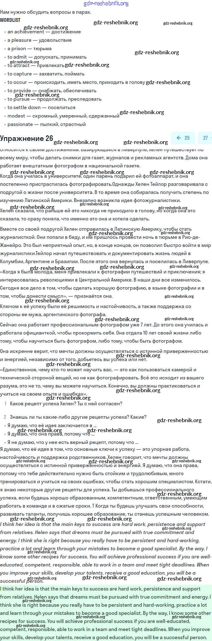 ГДЗ решебники Учебник по Английскому языку 11 класс Биболетова, Бабушис Enjoy English - Unit 2. Your Dream Job 26