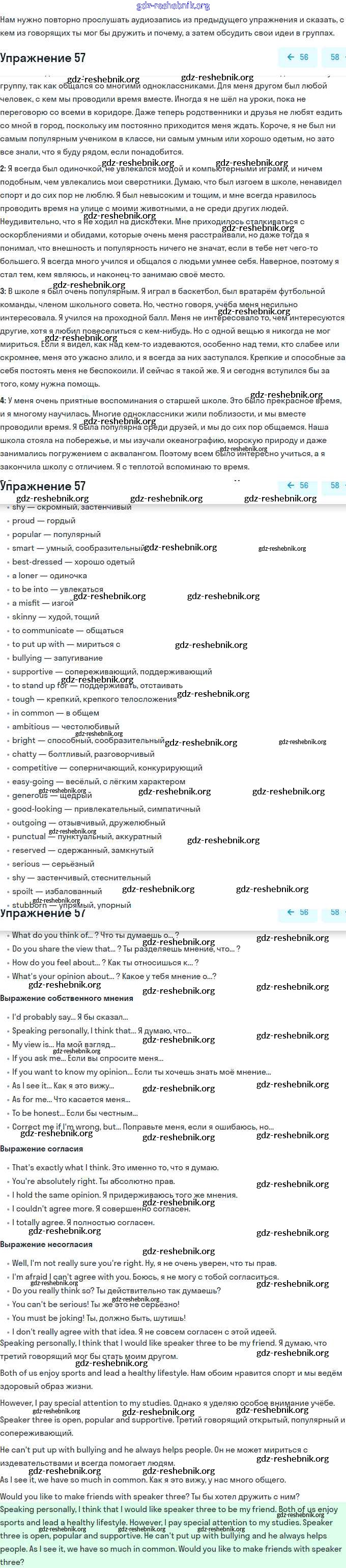 gdz-reshebnik.org - сайт готовых домашних заданий и решебников для школьников по Английскому языку для одиннадцатого класса. Предоставляем готовые ответы на задания, авторские материалы к Учебнику Биболетова, Бабушис Enjoy English - Unit 4. What Are Your Whereаbouts? 57 . Основная часть контента представлена в бесплатном онлайн-формате с удобным и простым интерфейсом.