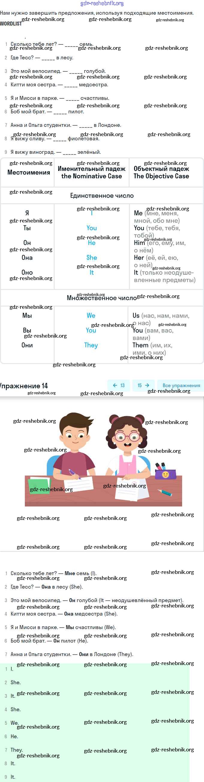 gdz-reshebnik.org - сайт готовых домашних заданий и решебников для школьников по Английскому языку для второго класса. Предоставляем готовые ответы на задания, авторские материалы к Лексико-грамматическому практикуму Афанасьева, Михеева Rainbow - Steps 50-56 14 . Основная часть контента представлена в бесплатном онлайн-формате с удобным и простым интерфейсом.