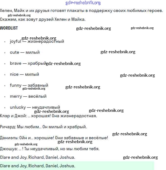 gdz-reshebnik.org - сайт готовых домашних заданий и решебников для школьников по Английскому языку для второго класса. Предоставляем готовые ответы на задания, авторские материалы к Учебнику Кузовлёв, Перегудова Перспектива Часть 1, 2 - Lesson 1-27 14 . Основная часть контента представлена в бесплатном онлайн-формате с удобным и простым интерфейсом.