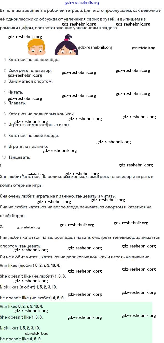 gdz-reshebnik.org - сайт готовых домашних заданий и решебников для школьников по Английскому языку для второго класса. Предоставляем готовые ответы на задания, авторские материалы к Учебнику Кузовлёв, Перегудова Перспектива Часть 1, 2 - Lesson 29-55 49 . Основная часть контента представлена в бесплатном онлайн-формате с удобным и простым интерфейсом.