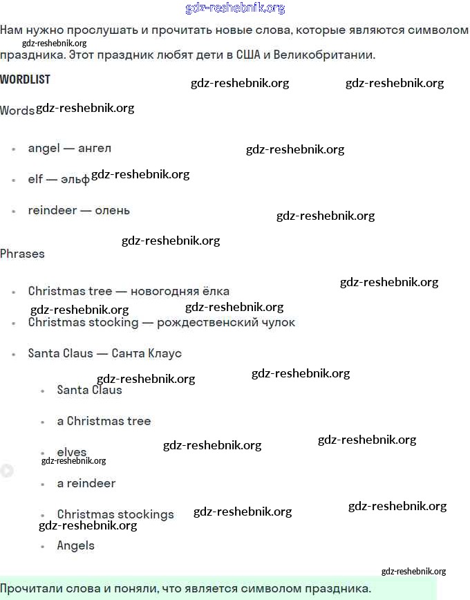 gdz-reshebnik.org - сайт готовых домашних заданий и решебников для школьников по Английскому языку для второго класса. Предоставляем готовые ответы на задания, авторские материалы к Рабочей тетради Кузовлёв, Перегудова - Lesson 27. Merry Christmas and Happy New Year! 43 . Основная часть контента представлена в бесплатном онлайн-формате с удобным и простым интерфейсом.