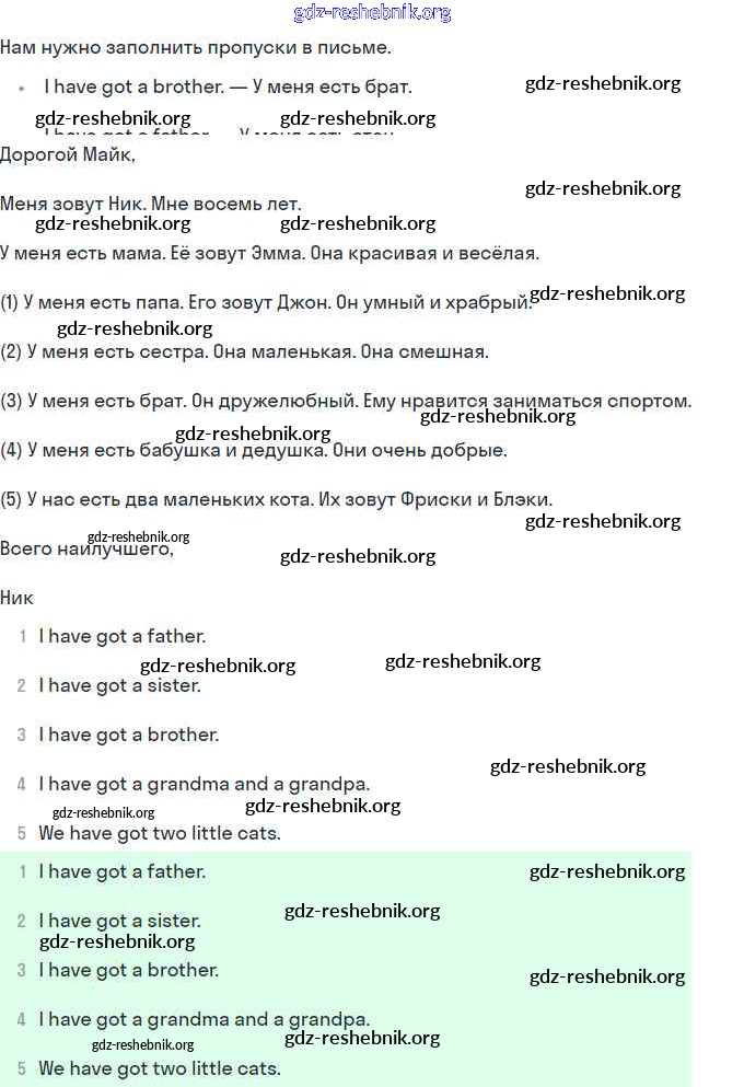 ГДЗ решебники Рабочая тетрадь по Английскому языку 2 класс Кузовлёв, Перегудова - Lesson 31. I have got a nice family 52