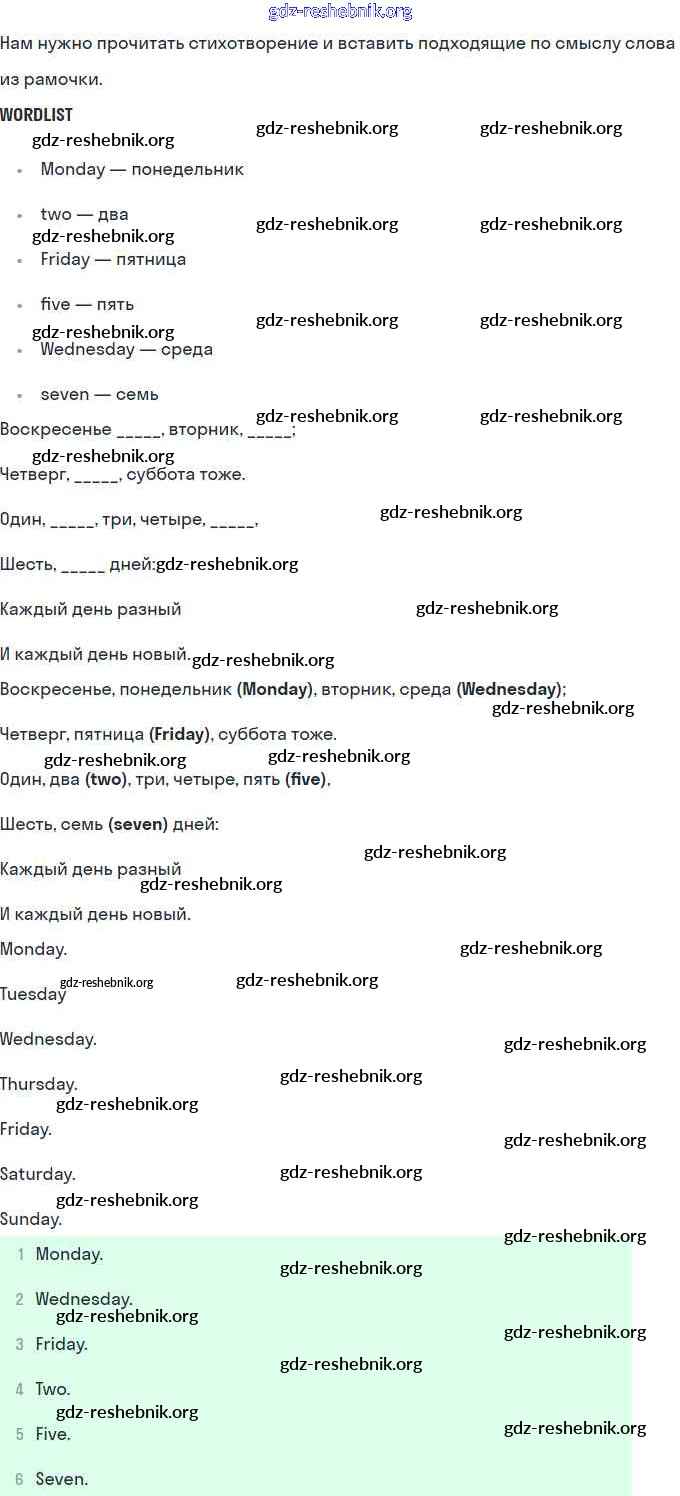 ГДЗ решебники Рабочая тетрадь по Английскому языку 2 класс Кузовлёв, Перегудова - Lesson 35. Today is Friday 59