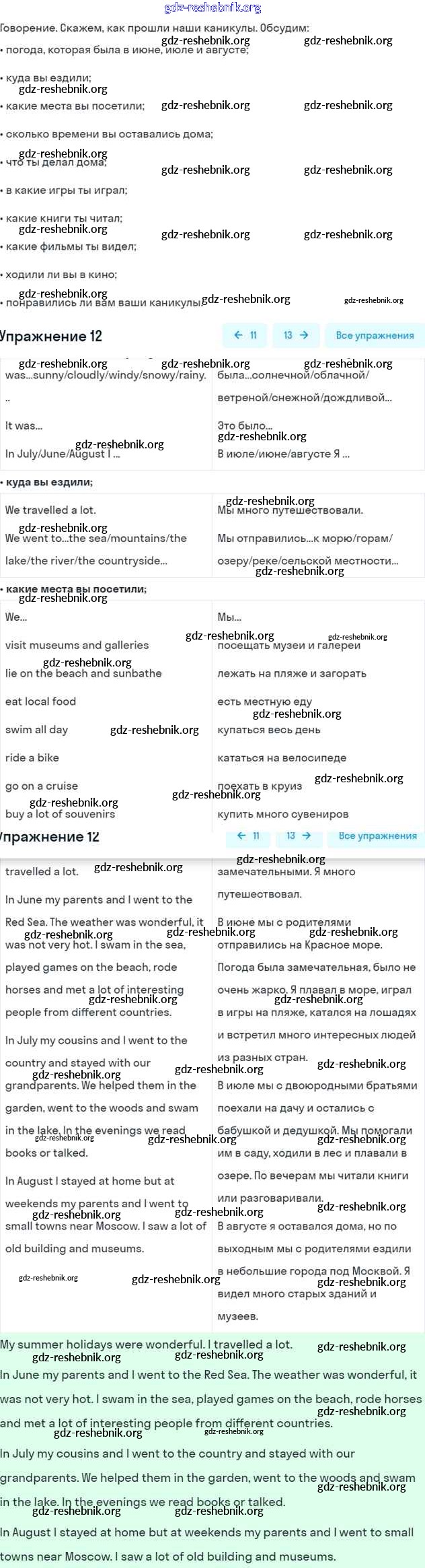 ГДЗ решебники Рабочая тетрадь по Английскому языку 5 класс Афанасьева, Михеева Rainbow - Unit One. Holidays Are Over 12