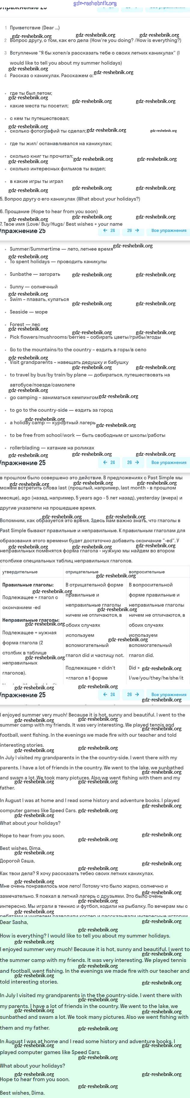 ГДЗ решебники Рабочая тетрадь по Английскому языку 5 класс Афанасьева, Михеева Rainbow - Unit One. Holidays Are Over 25