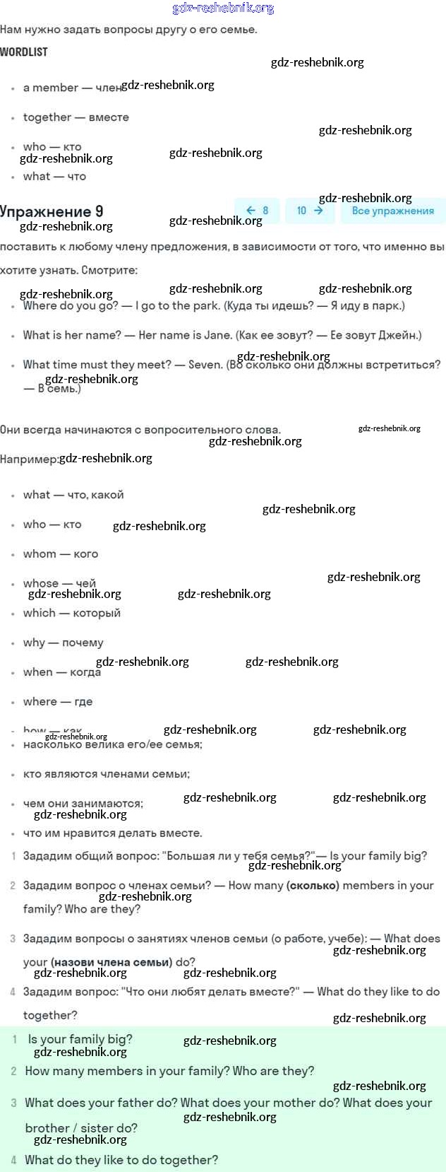 ГДЗ решебники Рабочая тетрадь по Английскому языку 5 класс Афанасьева, Михеева Rainbow - Unit Two. Family History 9