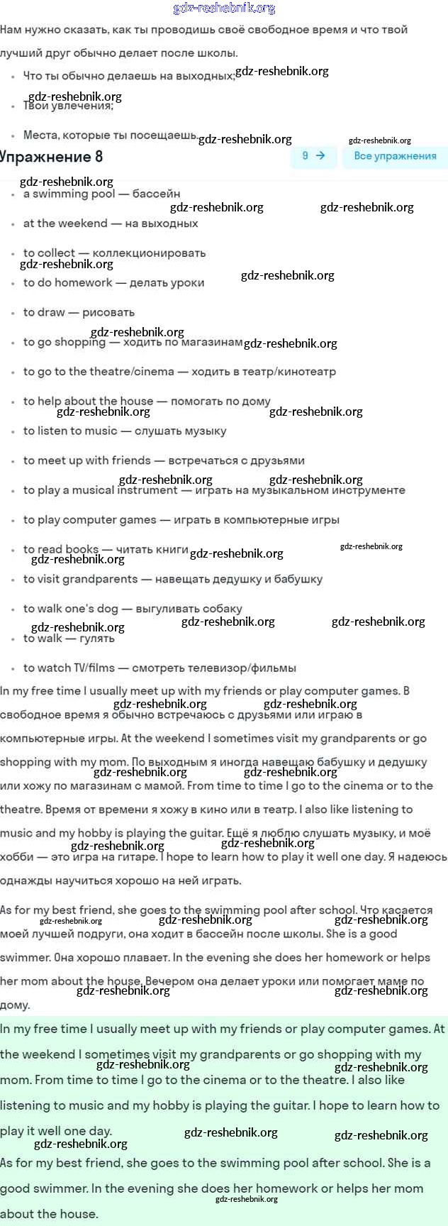 ГДЗ решебники Рабочая тетрадь по Английскому языку 5 класс Афанасьева, Михеева Rainbow - Unit Four. After School 8