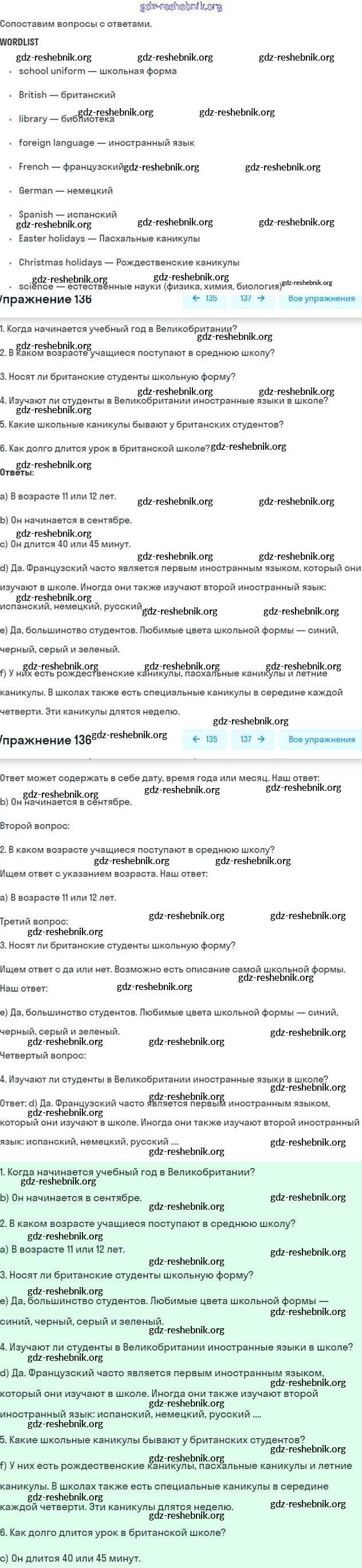 gdz-reshebnik.org - сайт готовых домашних заданий и решебников для школьников по Английскому языку для пятого класса. Предоставляем готовые ответы на задания, авторские материалы к Учебнику Биболетова, Денисенко Enjoy English - Unit 1. Hello! Nice to see you again! 136 . Основная часть контента представлена в бесплатном онлайн-формате с удобным и простым интерфейсом.