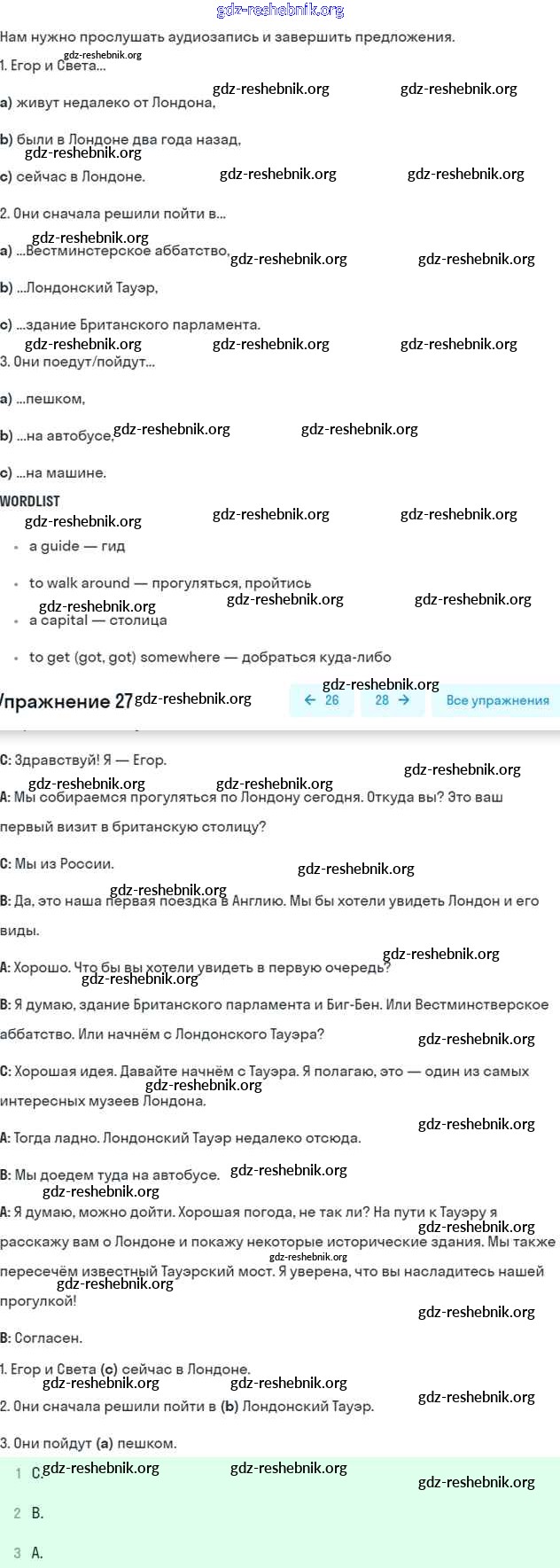 ГДЗ решебники Учебник по Английскому языку 5 класс Биболетова, Денисенко Enjoy English - Unit 3. Faces of London 27