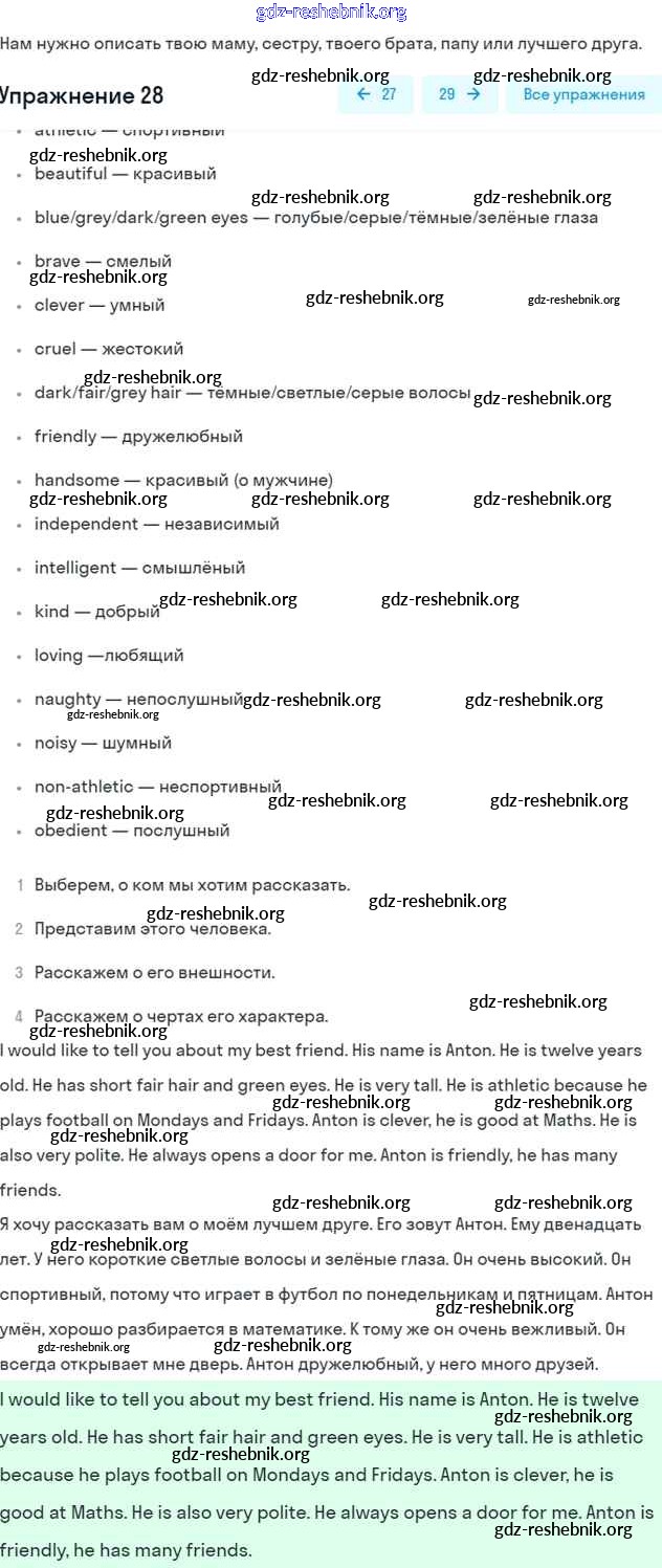 ГДЗ решебники Учебник по Английскому языку 5 класс Биболетова, Денисенко Enjoy English - Unit 4. Learning more about each other 28