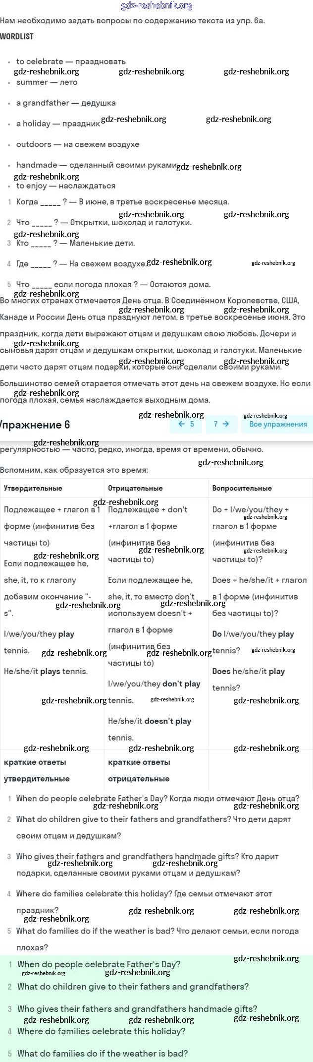 ГДЗ решебники Рабочая тетрадь по Английскому языку 5 класс Биболетова, Денисенко Enjoy English - Exercises 6