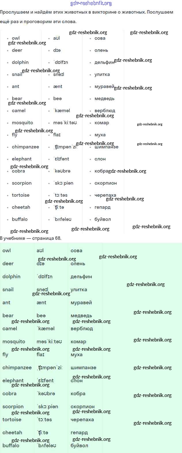 gdz-reshebnik.org - сайт готовых домашних заданий и решебников для школьников по Английскому языку для пятого класса. Предоставляем готовые ответы на задания, авторские материалы к Учебнику Комарова, Ларионова Инновационная школа - Страницы 68 . Основная часть контента представлена в бесплатном онлайн-формате с удобным и простым интерфейсом.