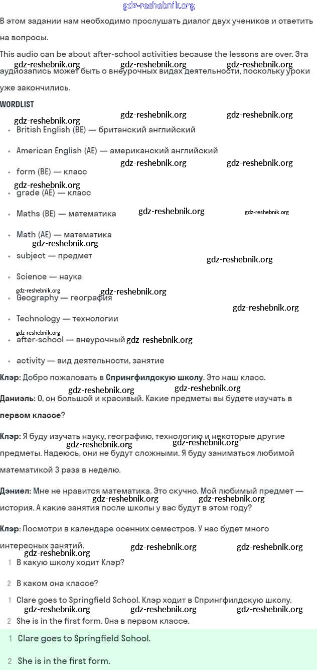 ГДЗ решебники Учебник по Английскому языку 5 класс Кузовлёв, Лапа УМК - Lesson 4. Welcome to my school! 1
