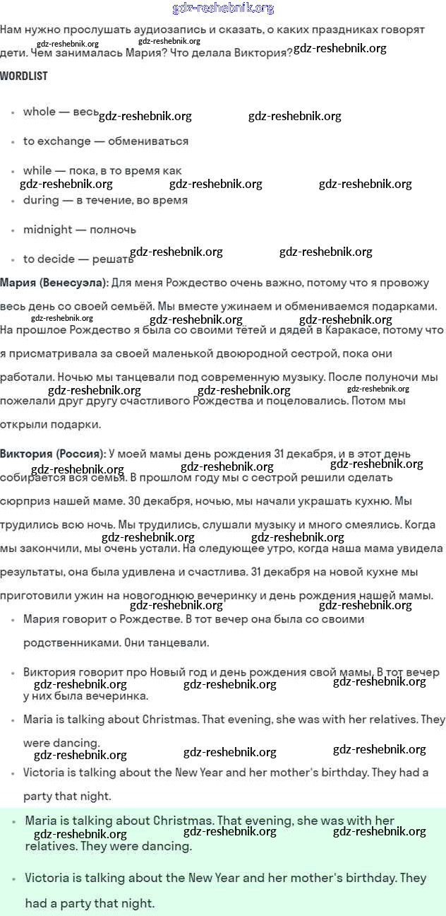gdz-reshebnik.org - сайт готовых домашних заданий и решебников для школьников по Английскому языку для пятого класса. Предоставляем готовые ответы на задания, авторские материалы к Учебнику Кузовлёв, Лапа УМК - Lesson 2. I was decorating the Christmas tree for two hours 3 . Основная часть контента представлена в бесплатном онлайн-формате с удобным и простым интерфейсом.