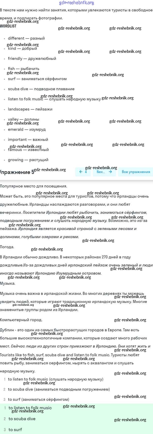 gdz-reshebnik.org - сайт готовых домашних заданий и решебников для школьников по Английскому языку для пятого класса. Предоставляем готовые ответы на задания, авторские материалы к Учебнику Кузовлёв, Лапа УМК - Lesson 3. Events in Northern Ireland 5 . Основная часть контента представлена в бесплатном онлайн-формате с удобным и простым интерфейсом.