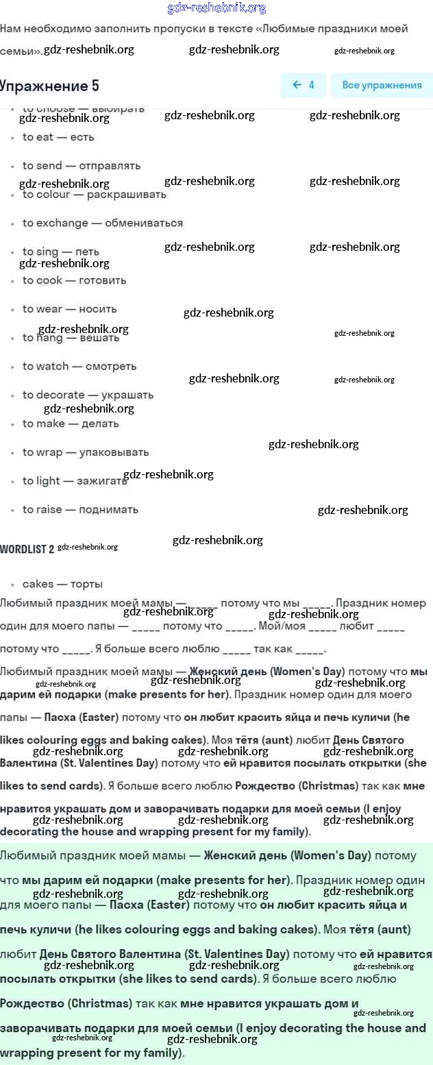gdz-reshebnik.org - сайт готовых домашних заданий и решебников для школьников по Английскому языку для пятого класса. Предоставляем готовые ответы на задания, авторские материалы к Учебнику Кузовлёв, Лапа УМК - Lesson 1. What is your favourite holiday? 5 . Основная часть контента представлена в бесплатном онлайн-формате с удобным и простым интерфейсом.