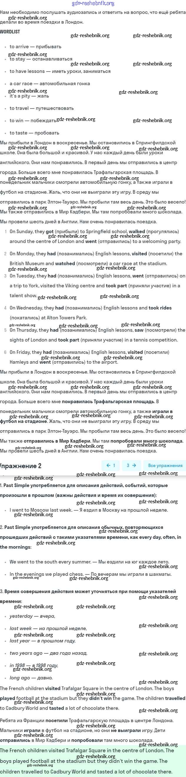 gdz-reshebnik.org - сайт готовых домашних заданий и решебников для школьников по Английскому языку для пятого класса. Предоставляем готовые ответы на задания, авторские материалы к Учебнику Кузовлёв, Лапа УМК - Lesson 1. We had a nice time in London 2 . Основная часть контента представлена в бесплатном онлайн-формате с удобным и простым интерфейсом.