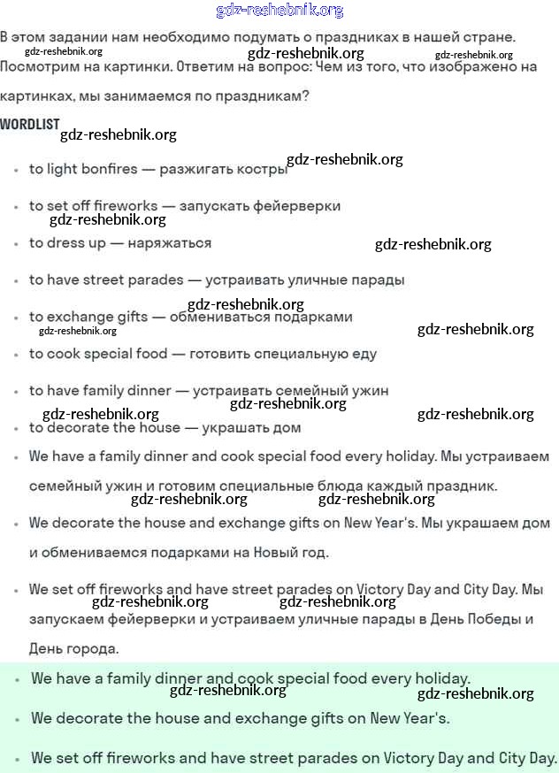 gdz-reshebnik.org - сайт готовых домашних заданий и решебников для школьников по Английскому языку для пятого класса. Предоставляем готовые ответы на задания, авторские материалы к Учебнику Ваулина, Дули Spotlight - Module 8. Special days стр. 96 . Основная часть контента представлена в бесплатном онлайн-формате с удобным и простым интерфейсом.