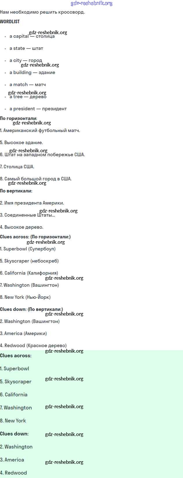 gdz-reshebnik.org - сайт готовых домашних заданий и решебников для школьников по Английскому языку для пятого класса. Предоставляем готовые ответы на задания, авторские материалы к Рабочей тетради Вербицкая, Твердохлебова Forward - Unit 8. Holidays in the USA 5 . Основная часть контента представлена в бесплатном онлайн-формате с удобным и простым интерфейсом.