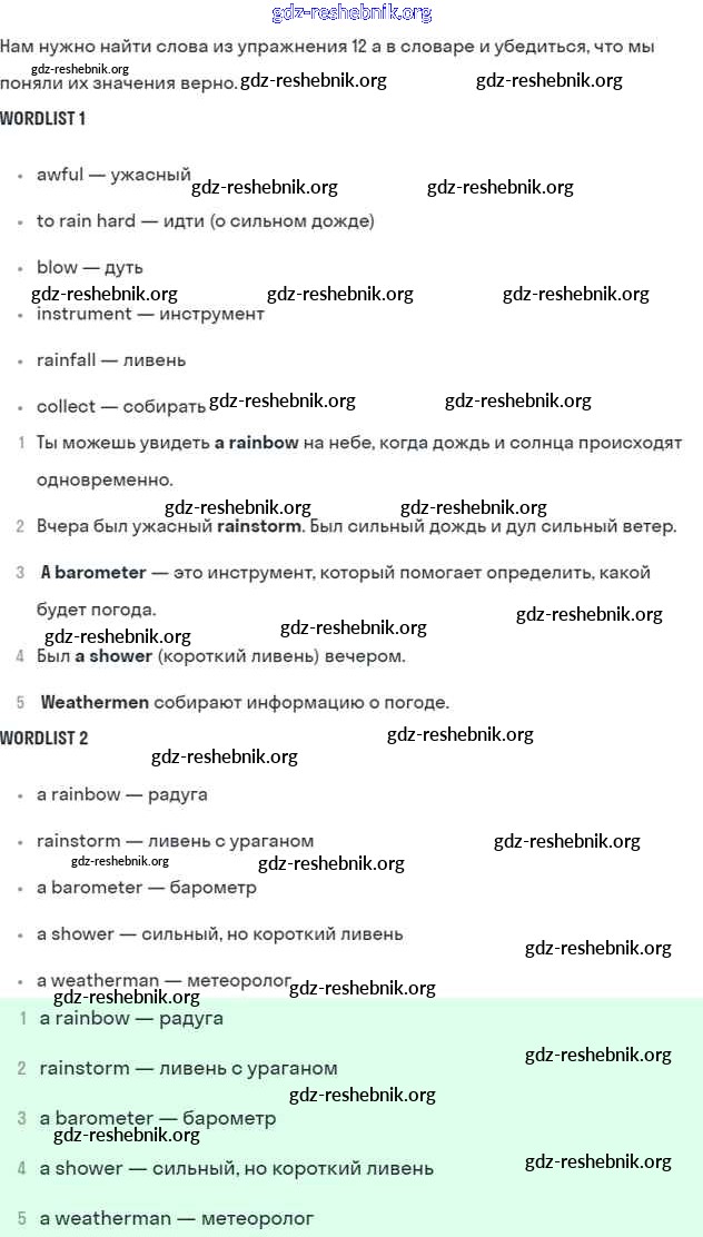 gdz-reshebnik.org - сайт готовых домашних заданий и решебников для школьников по Английскому языку для шестого класса. Предоставляем готовые ответы на задания, авторские материалы к Учебнику Афанасьева, Михеева Углубленный уровень - Unit 1. Weather 12 . Основная часть контента представлена в бесплатном онлайн-формате с удобным и простым интерфейсом.