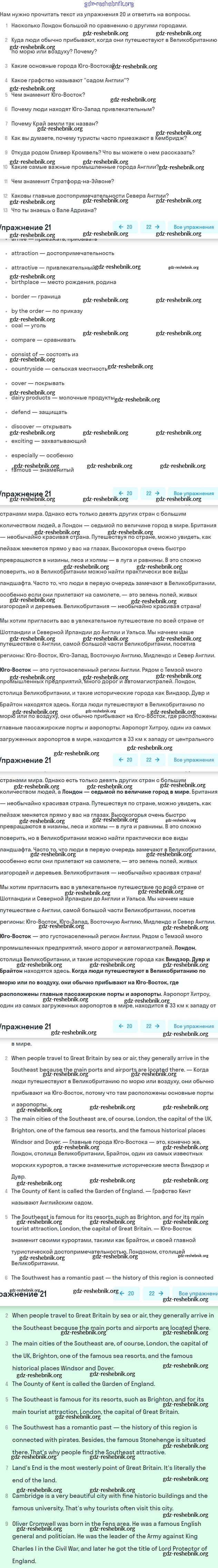 ГДЗ решебники Учебник по Английскому языку 6 класс Афанасьева, Михеева Углубленный уровень - Unit 8. England 21