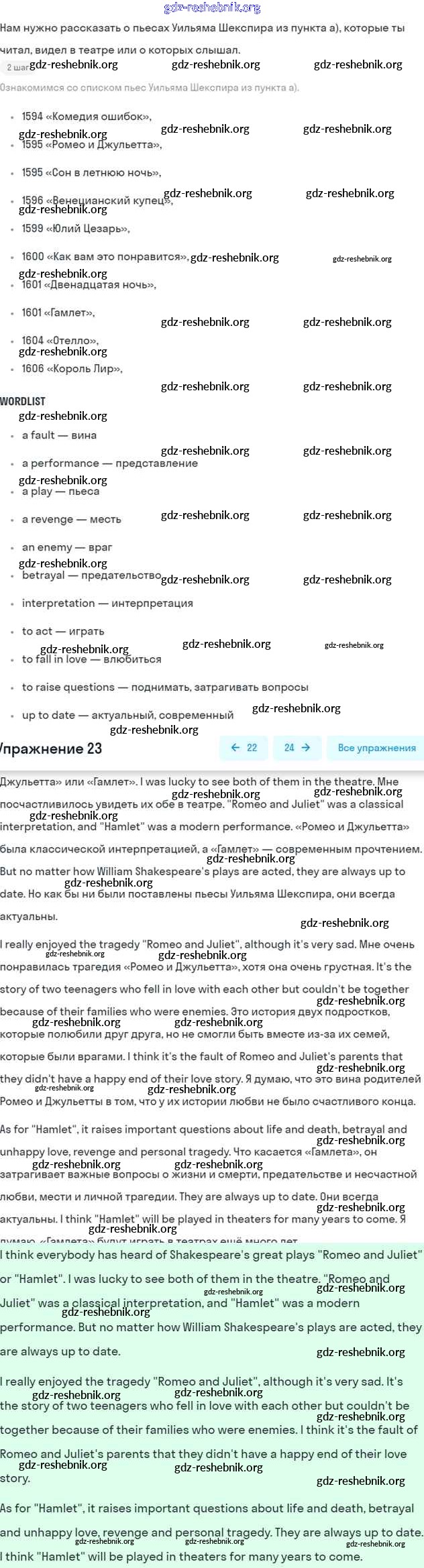 ГДЗ решебники Учебник по Английскому языку 6 класс Афанасьева, Михеева Углубленный уровень - Unit 10. Shakespeare’s Land 23