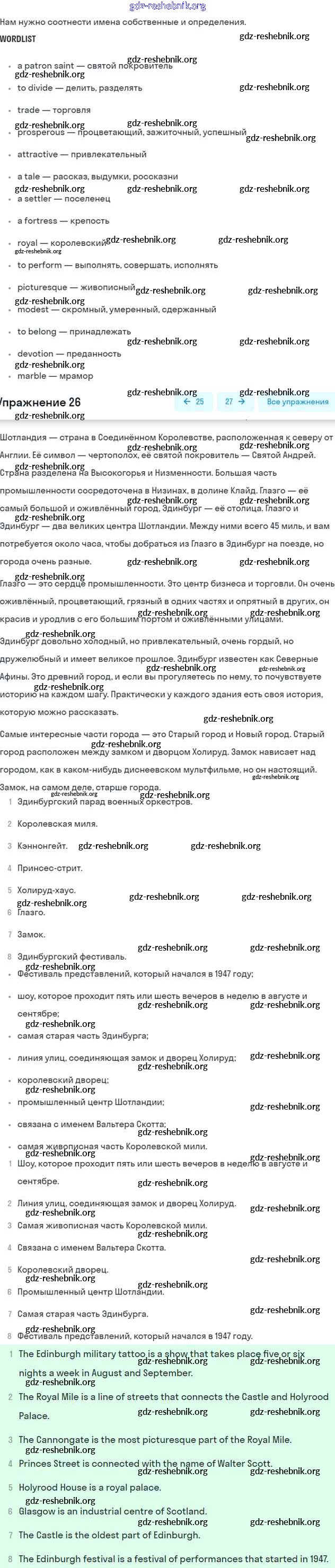 gdz-reshebnik.org - сайт готовых домашних заданий и решебников для школьников по Английскому языку для шестого класса. Предоставляем готовые ответы на задания, авторские материалы к Учебнику Афанасьева, Михеева Углубленный уровень - Unit 13. Scotland 26 . Основная часть контента представлена в бесплатном онлайн-формате с удобным и простым интерфейсом.