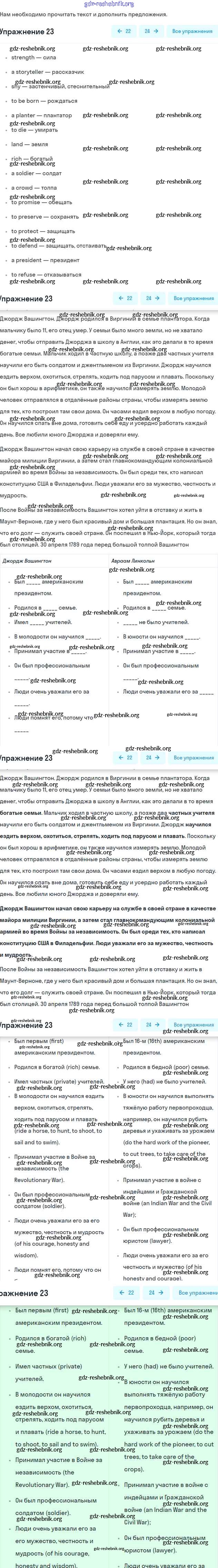 gdz-reshebnik.org - сайт готовых домашних заданий и решебников для школьников по Английскому языку для шестого класса. Предоставляем готовые ответы на задания, авторские материалы к Учебнику Афанасьева, Михеева Углубленный уровень - Unit 18. American President 23 . Основная часть контента представлена в бесплатном онлайн-формате с удобным и простым интерфейсом.