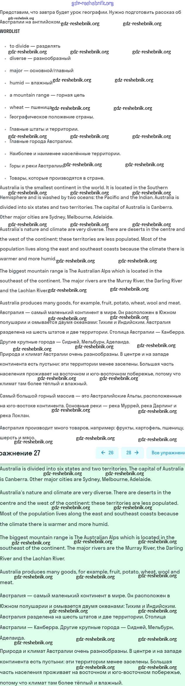ГДЗ решебники Учебник по Английскому языку 6 класс Афанасьева, Михеева Углубленный уровень - Unit 20. Geographical Outlook 27