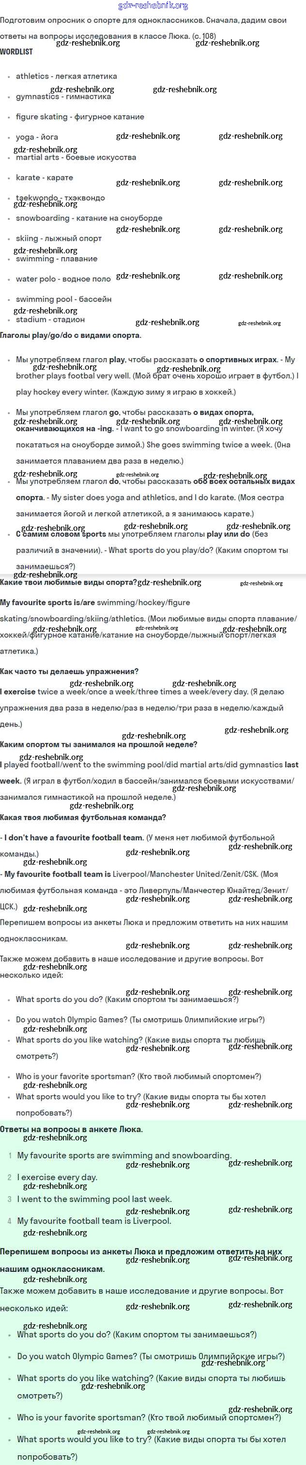 gdz-reshebnik.org - сайт готовых домашних заданий и решебников для школьников по Английскому языку для шестого класса. Предоставляем готовые ответы на задания, авторские материалы к Учебнику Комарова, Ларионова Инновационная школа - Страницы 108 . Основная часть контента представлена в бесплатном онлайн-формате с удобным и простым интерфейсом.