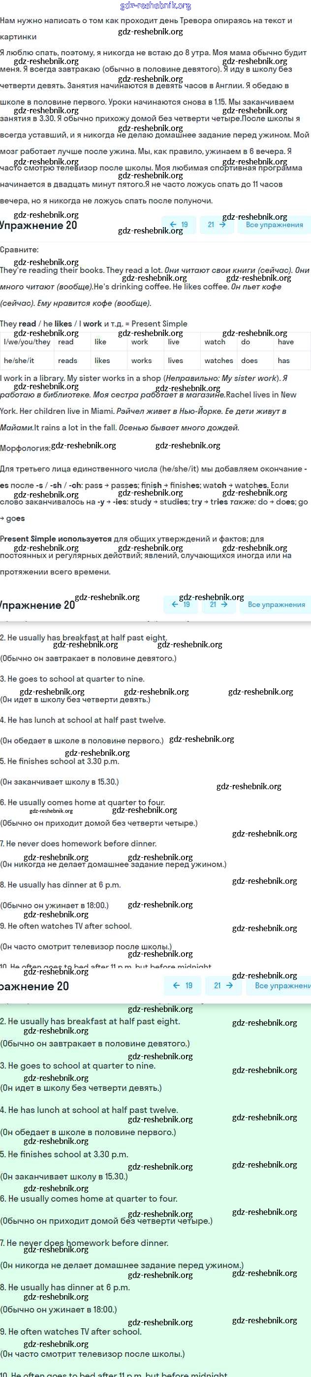 ГДЗ решебники Учебник по Английскому языку 6 класс Вербицкая, Гаярделли Forward Часть 1, 2 - Unit 2. Daily routines 20