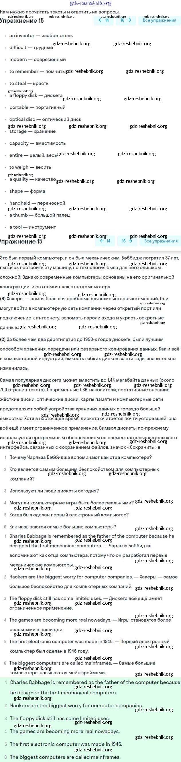 gdz-reshebnik.org - сайт готовых домашних заданий и решебников для школьников по Английскому языку для шестого класса. Предоставляем готовые ответы на задания, авторские материалы к Учебнику Вербицкая, Гаярделли Forward Часть 1, 2 - Unit 14. The world of computers 15 . Основная часть контента представлена в бесплатном онлайн-формате с удобным и простым интерфейсом.