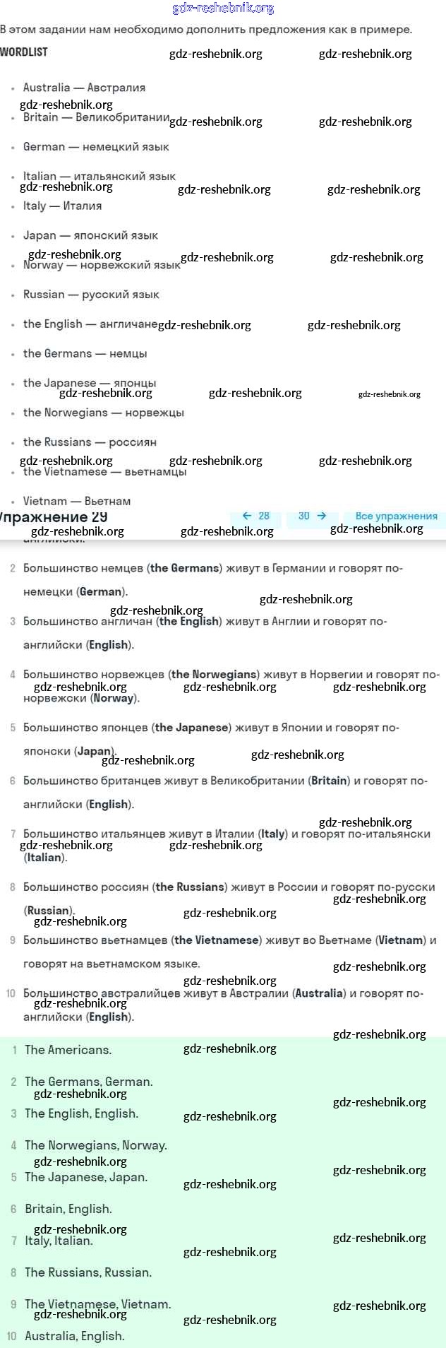 gdz-reshebnik.org - сайт готовых домашних заданий и решебников для школьников по Английскому языку для седьмого класса. Предоставляем готовые ответы на задания, авторские материалы к Рабочей тетради Афанасьева, Михеева Rainbow - Unit 3 29 . Основная часть контента представлена в бесплатном онлайн-формате с удобным и простым интерфейсом.