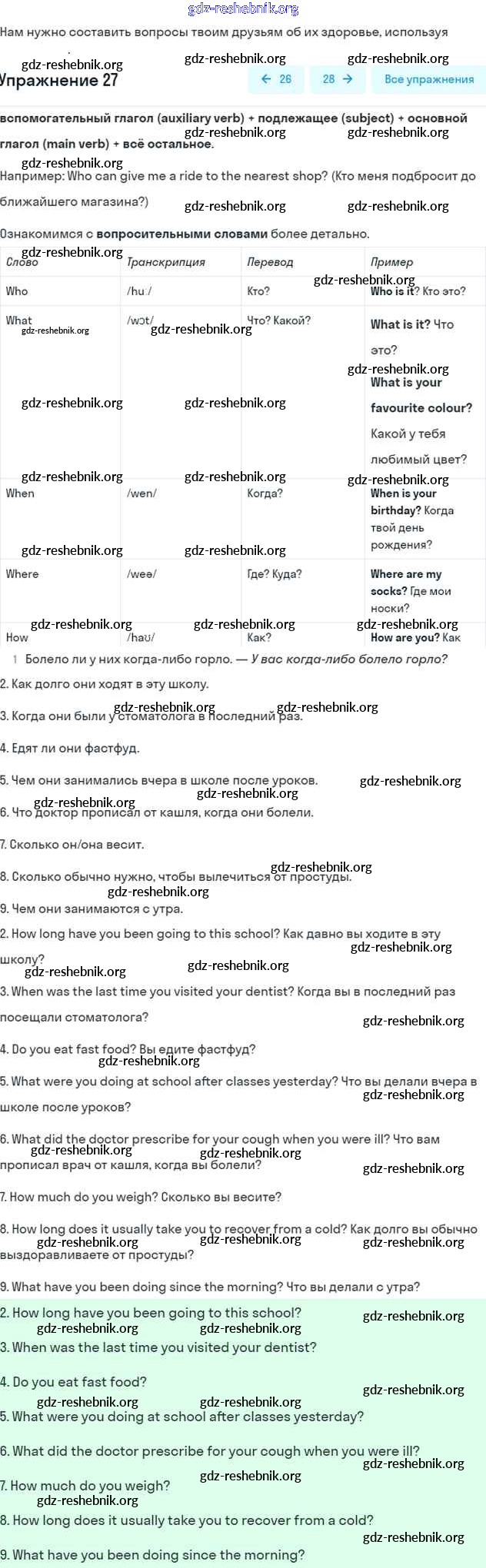 gdz-reshebnik.org - сайт готовых домашних заданий и решебников для школьников по Английскому языку для седьмого класса. Предоставляем готовые ответы на задания, авторские материалы к Рабочей тетради Афанасьева, Михеева Rainbow - Unit 6 27 . Основная часть контента представлена в бесплатном онлайн-формате с удобным и простым интерфейсом.