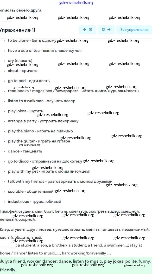 учебник / unit 1 / exercise / 11